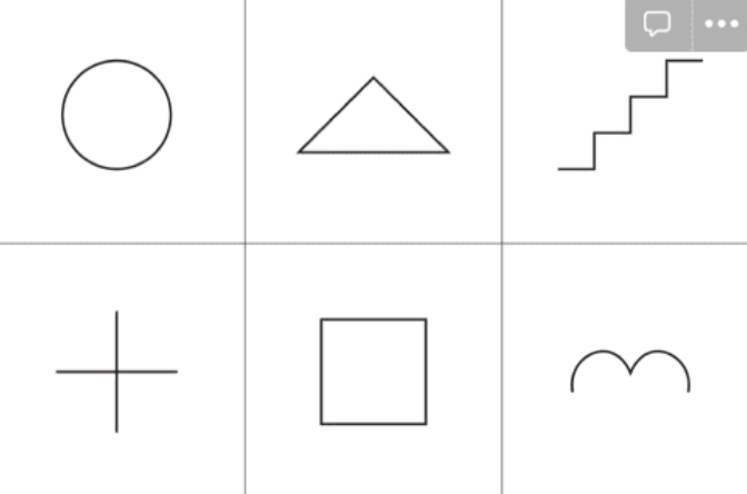 6개의 도형을 그린 후 그림과 형용사 텍스트를 써주세요!