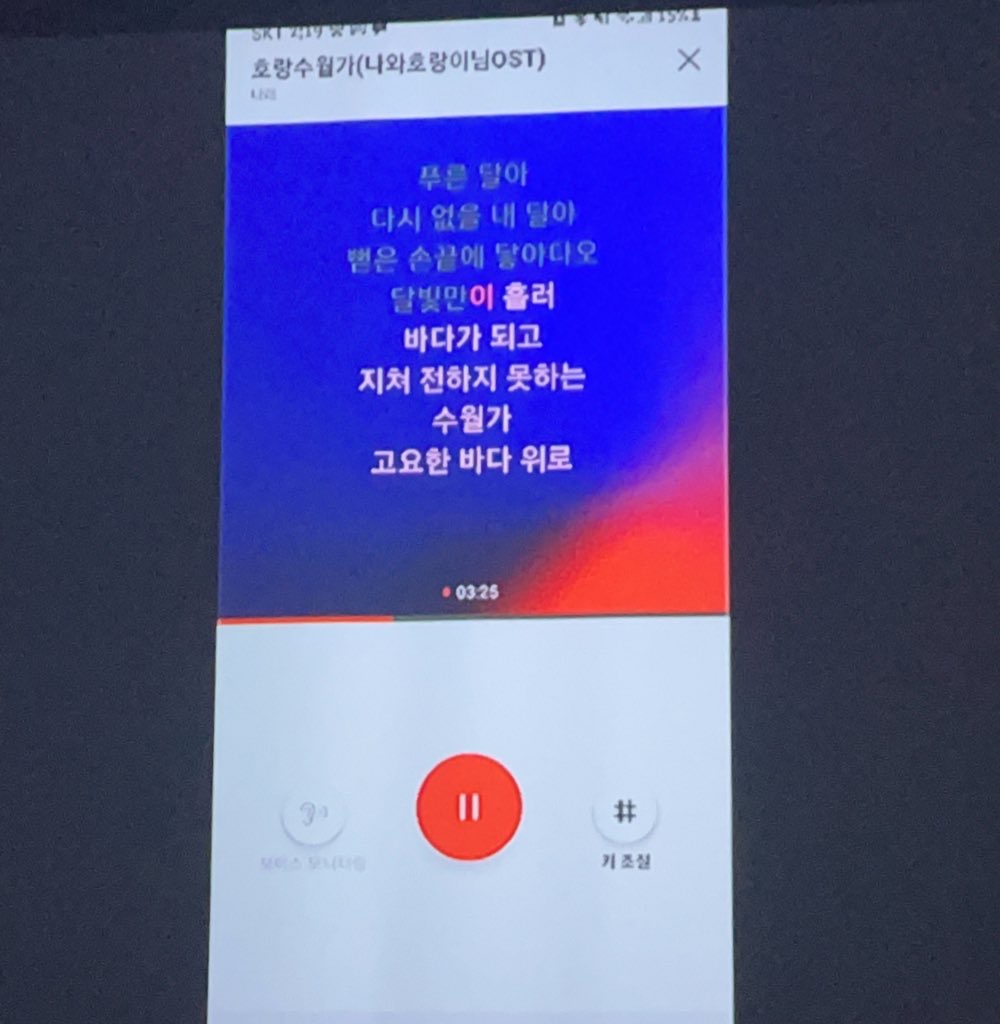 친구집에서 스크린빔으로 노래를 불렀습니다.